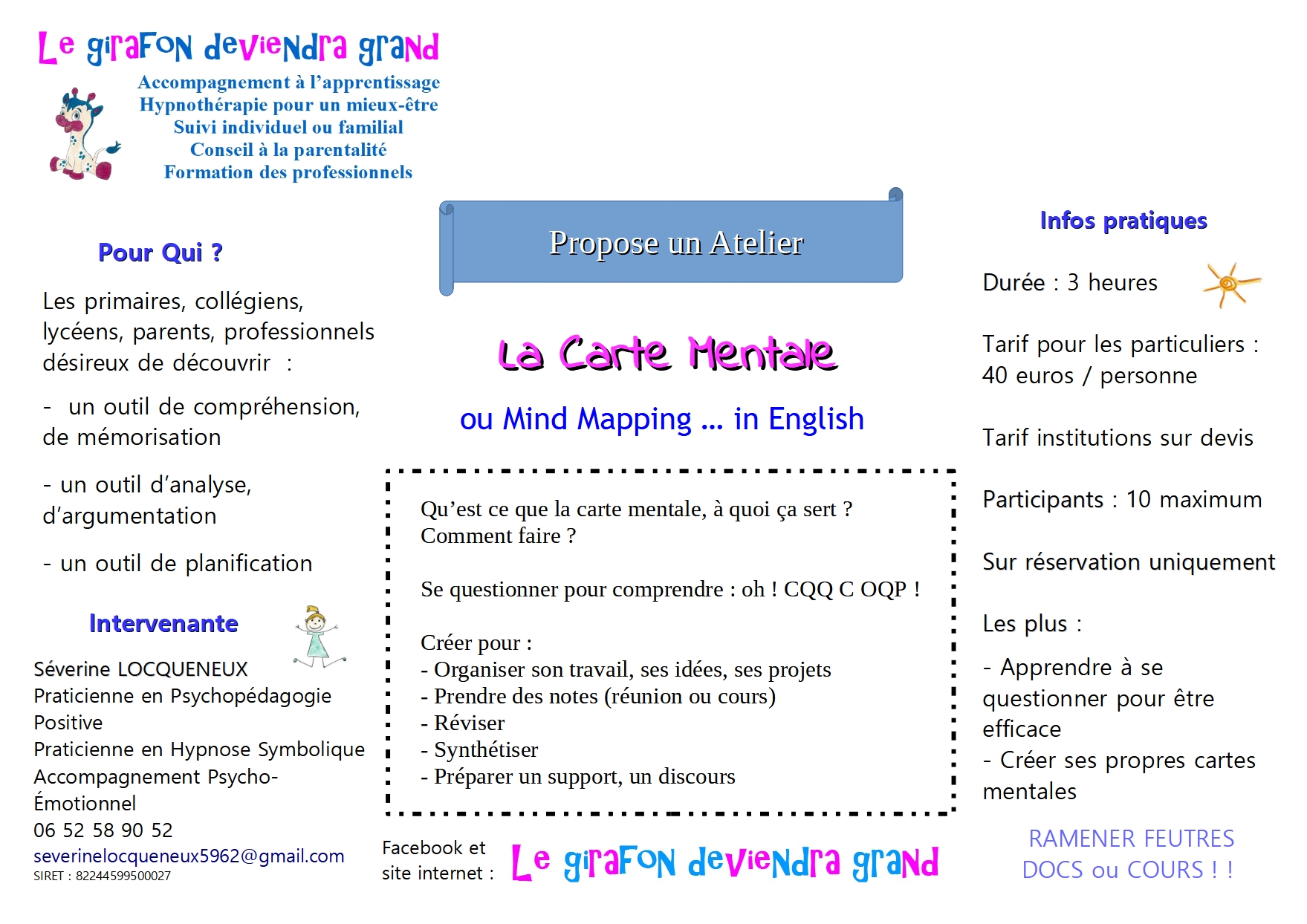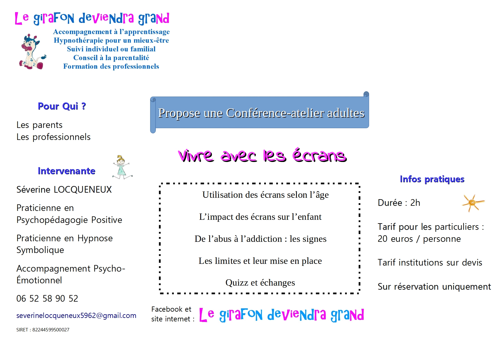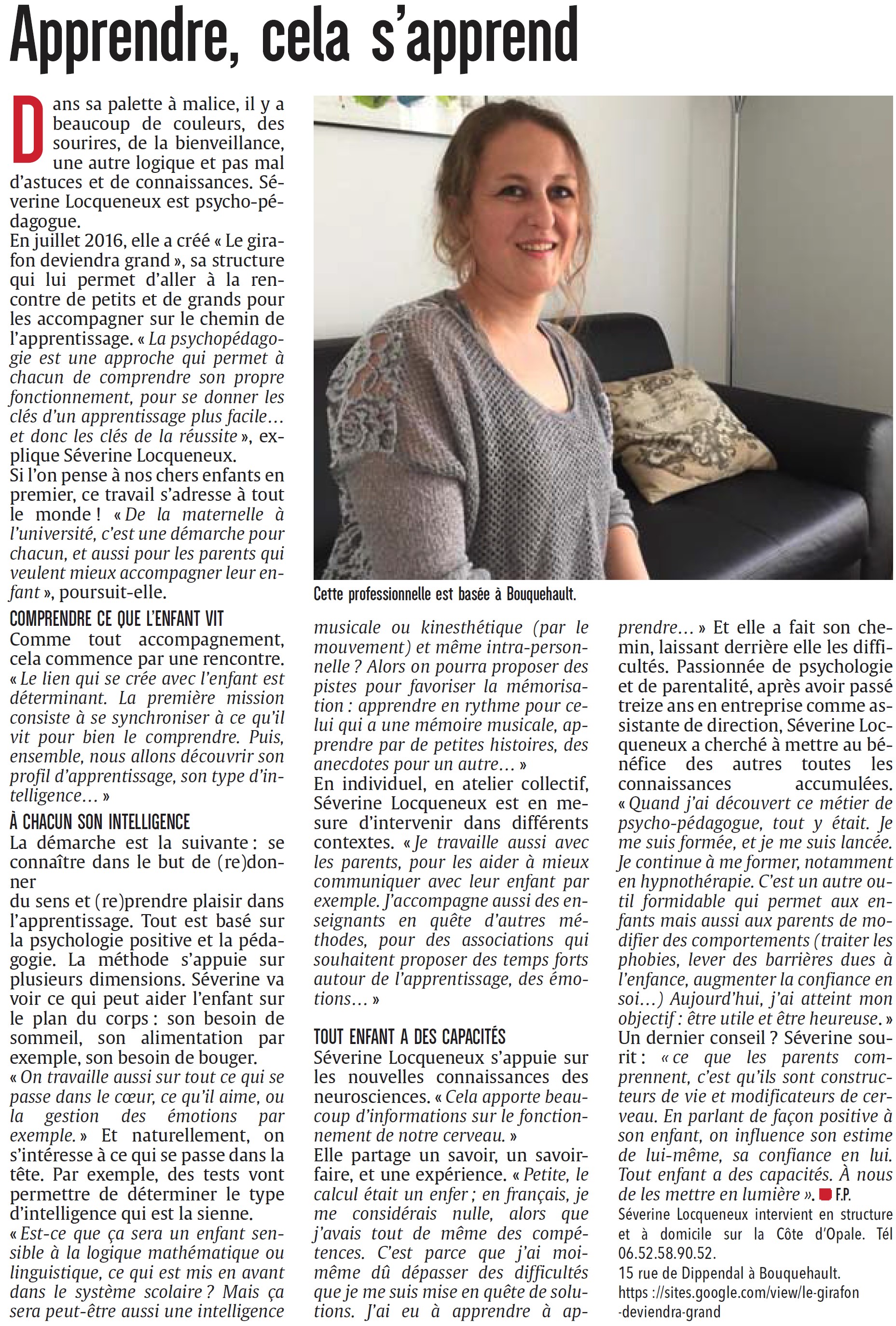 Voici toutes les informations sur le Clinique de psychopédagogie Séverine Locqueneux - Le Girafon Deviendra Grand - Psychopédagogie Positive - Hypnothérapie - Orientation Scolaire et Pro qui ce trouve au 3B Rte de Licques, 62890 Clerques (62). Sur cette fiche vous trouverez les photos, l'adresse, les horaires d'ouverture, le numero de téléphone et les avis clients.Vous pouvez églement rédiger un avis si vous le souhaitez en bas de page.